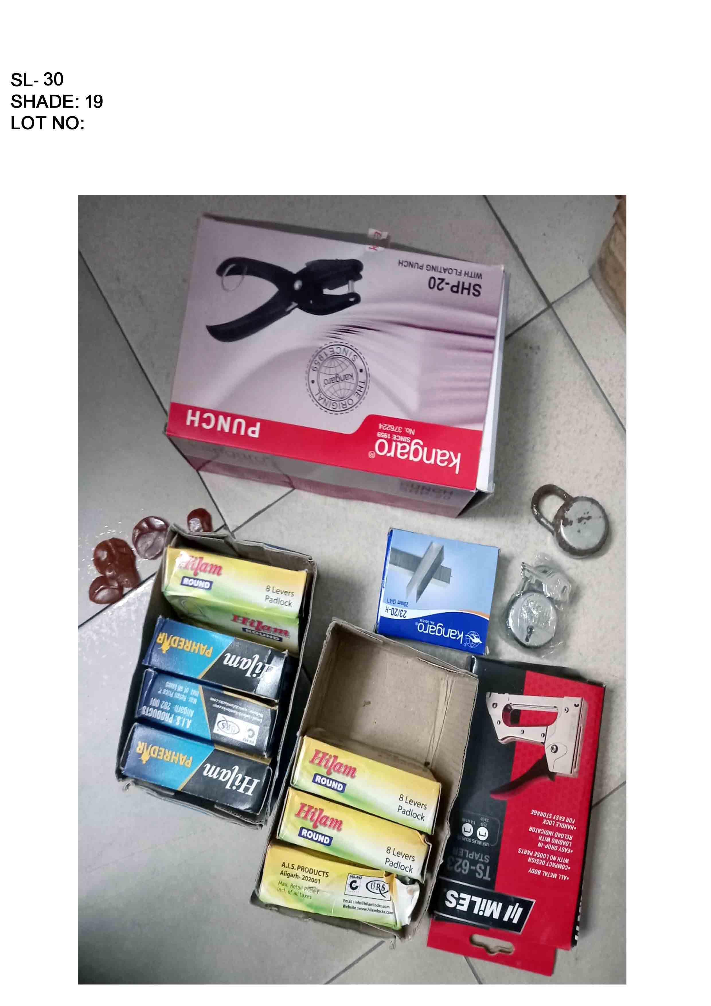 (1) Polishing Bar (Gala), (2) Stapler Machine (3) Punch Machine (4) Padlock (5) Staplar Pin (6) Sadiment Filter Sheet (7) Sewing Machine |